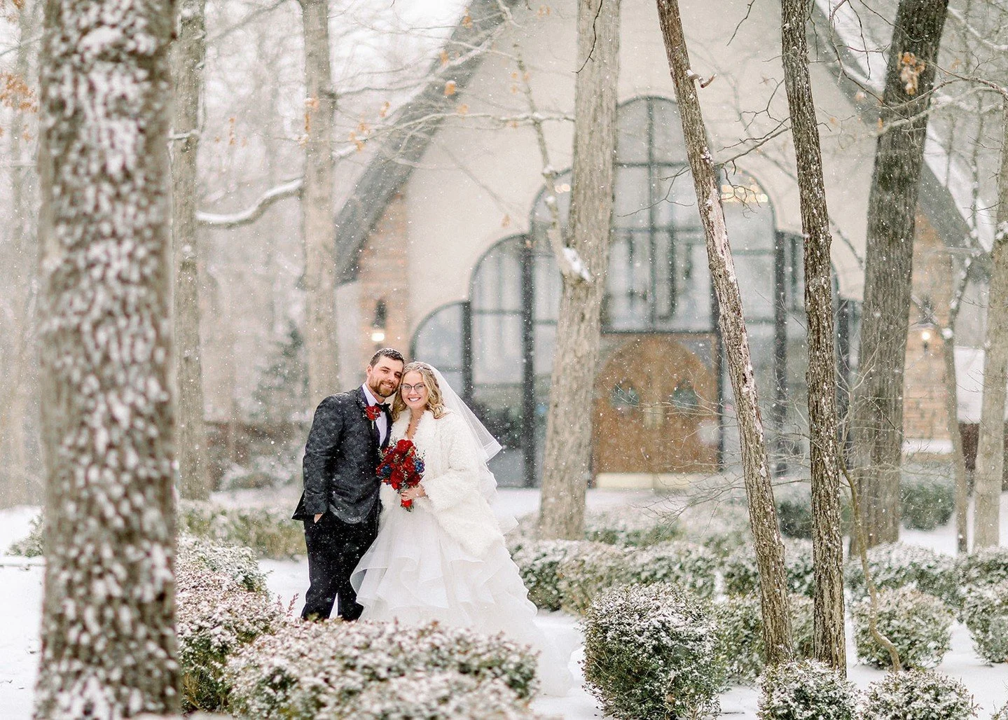 Elizabeth & Brayden’s March 15, 2025 wedding at Stonegate Glass Chapel featured light pink and burgundy details, an overcast spring day, and one of the first celebrations after the chapel’s repaint.