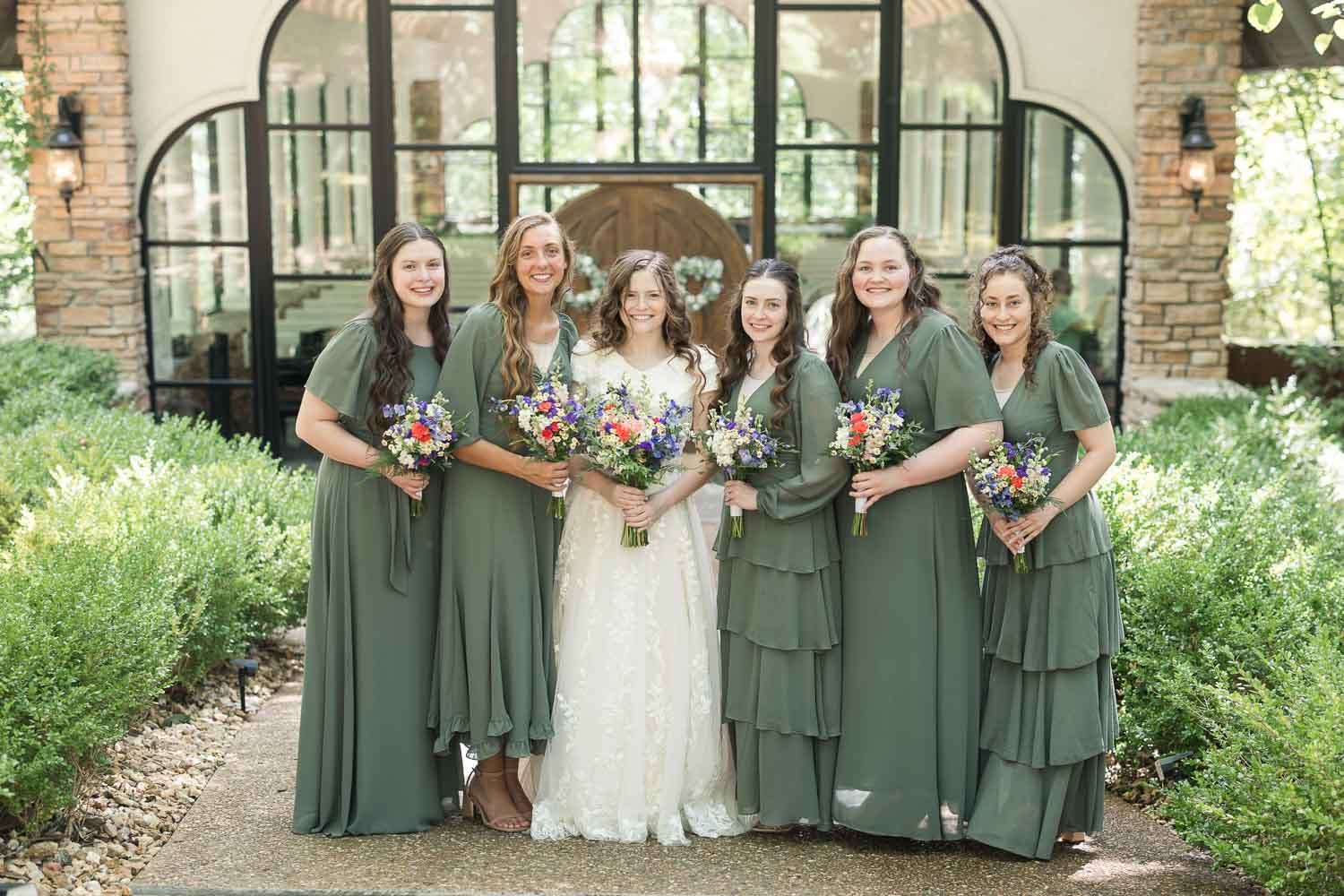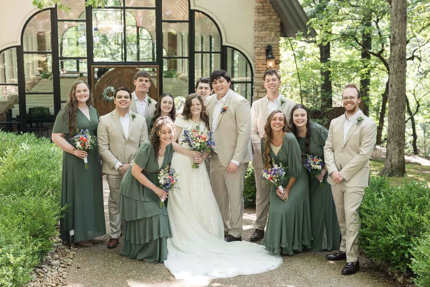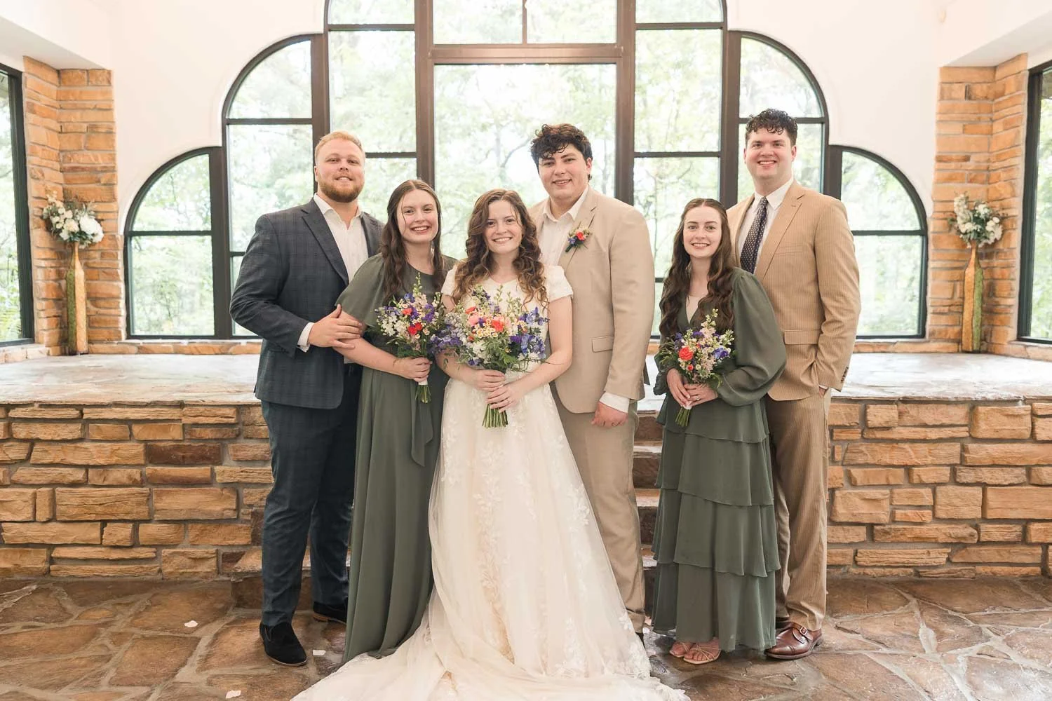 Alivia & Cade were married on July 5, 2025, on a sunny (and very warm) summer day filled with heartfelt moments and meaningful celebration. Their wedding featured a base of eucalyptus green, paired with bright, bold florals in red, blue, pink, purple, and yellow, creating a vibrant, joy-filled atmosphere.