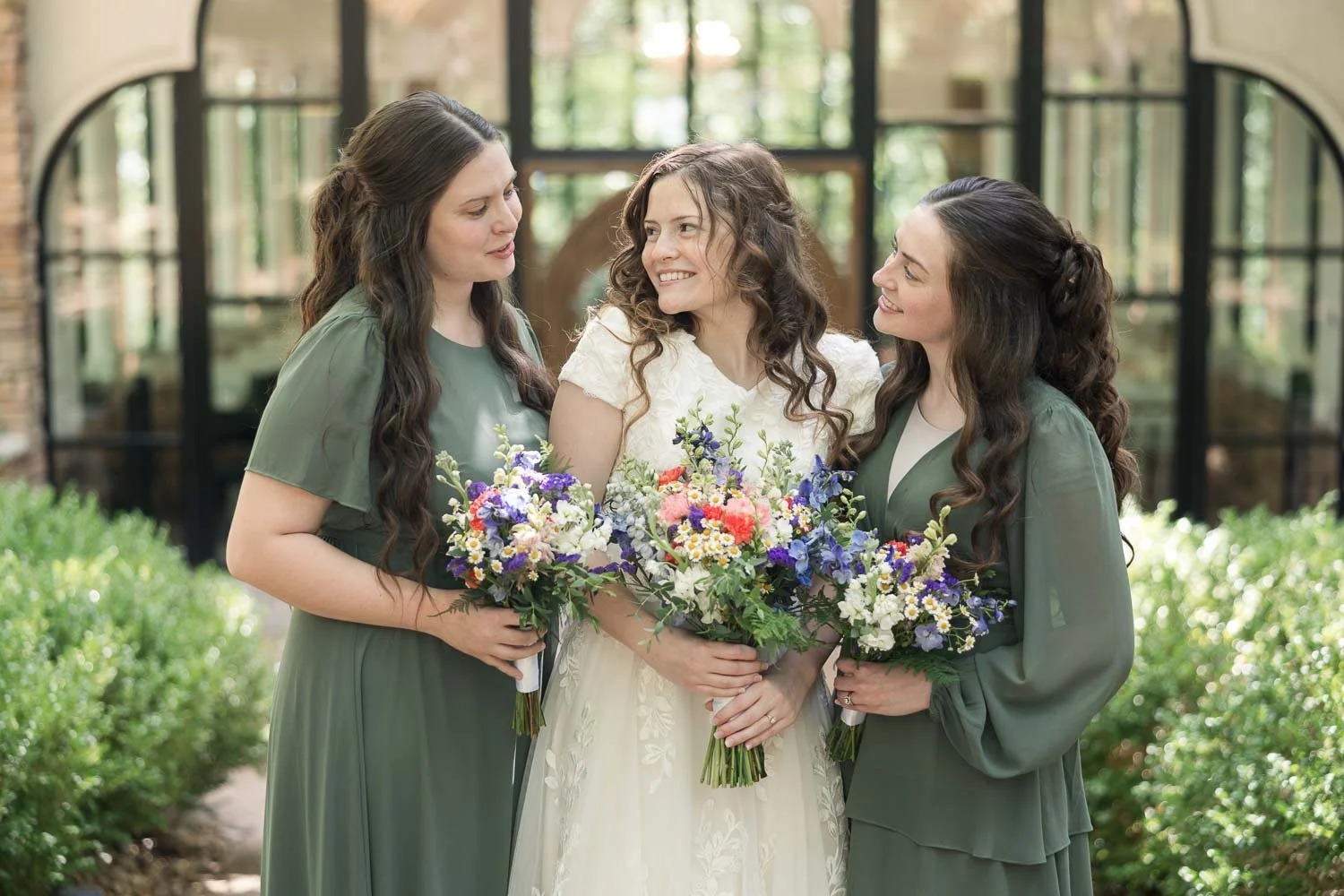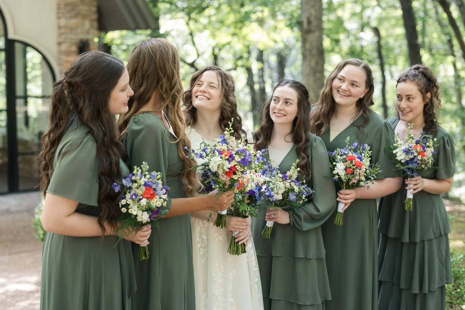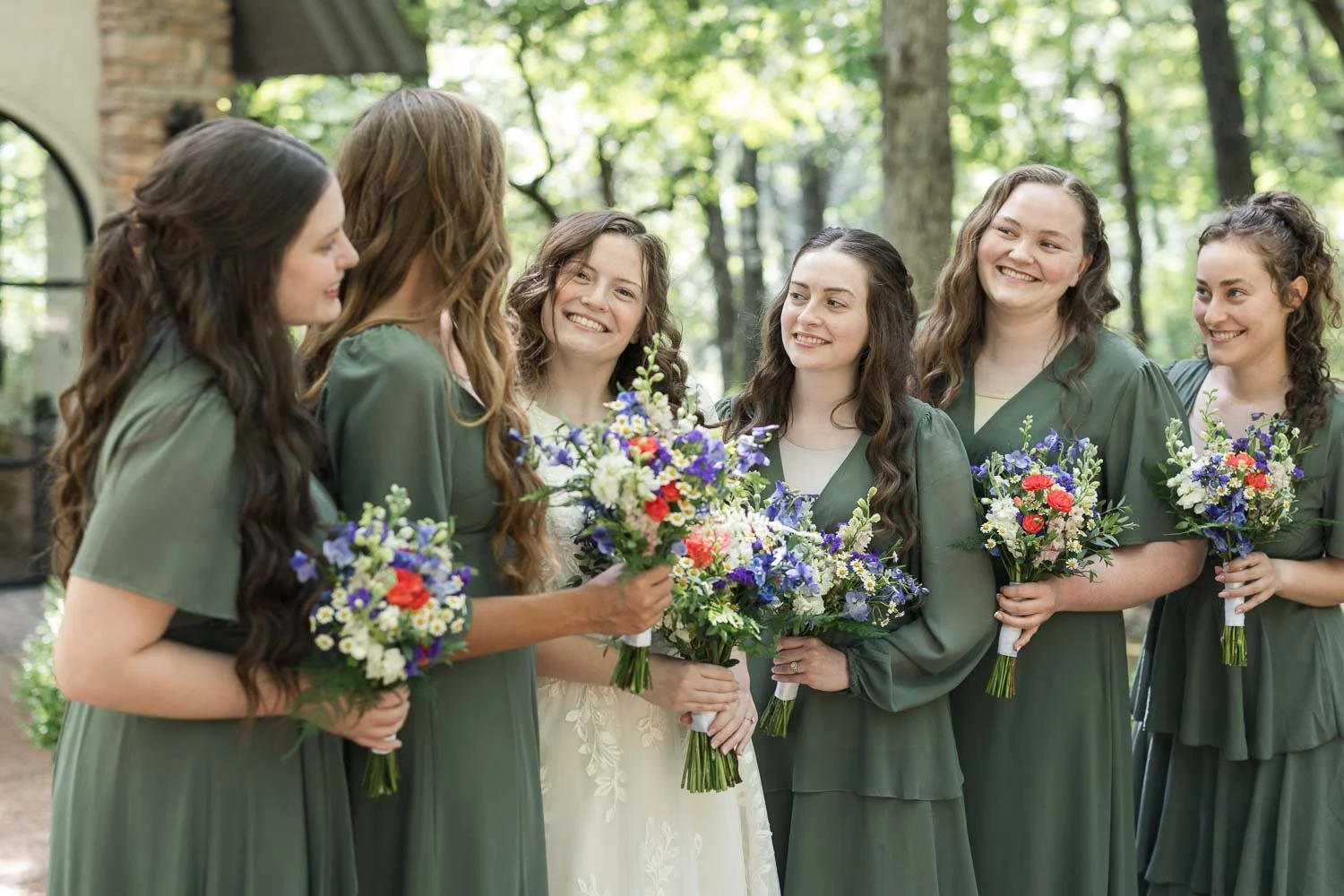 Alivia & Cade were married on July 5, 2025, on a sunny (and very warm) summer day filled with heartfelt moments and meaningful celebration. Their wedding featured a base of eucalyptus green, paired with bright, bold florals in red, blue, pink, purple, and yellow, creating a vibrant, joy-filled atmosphere.
