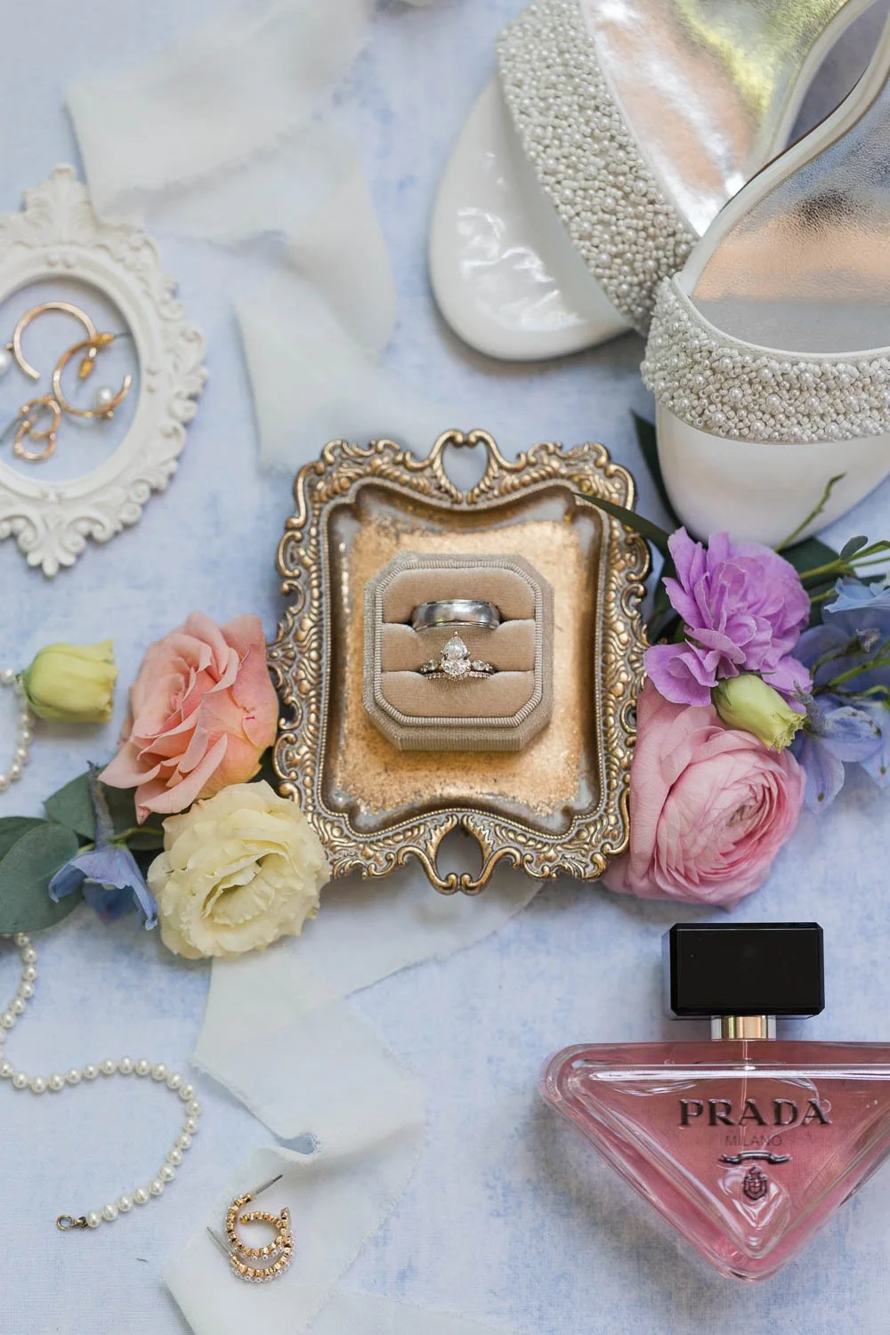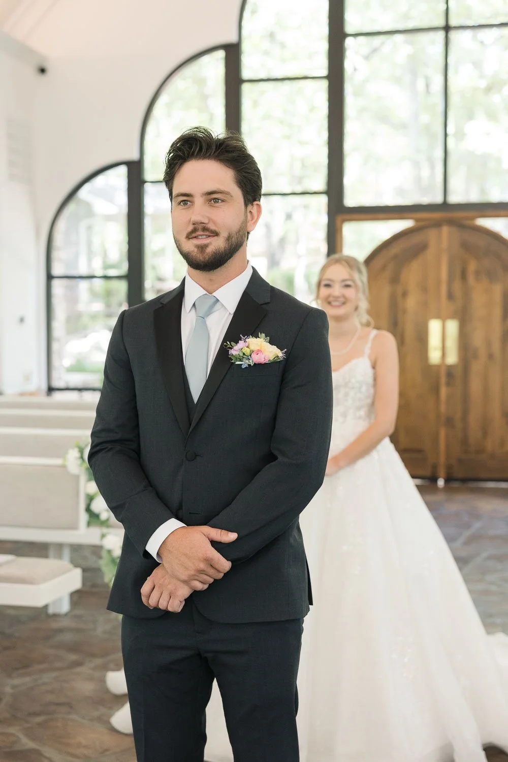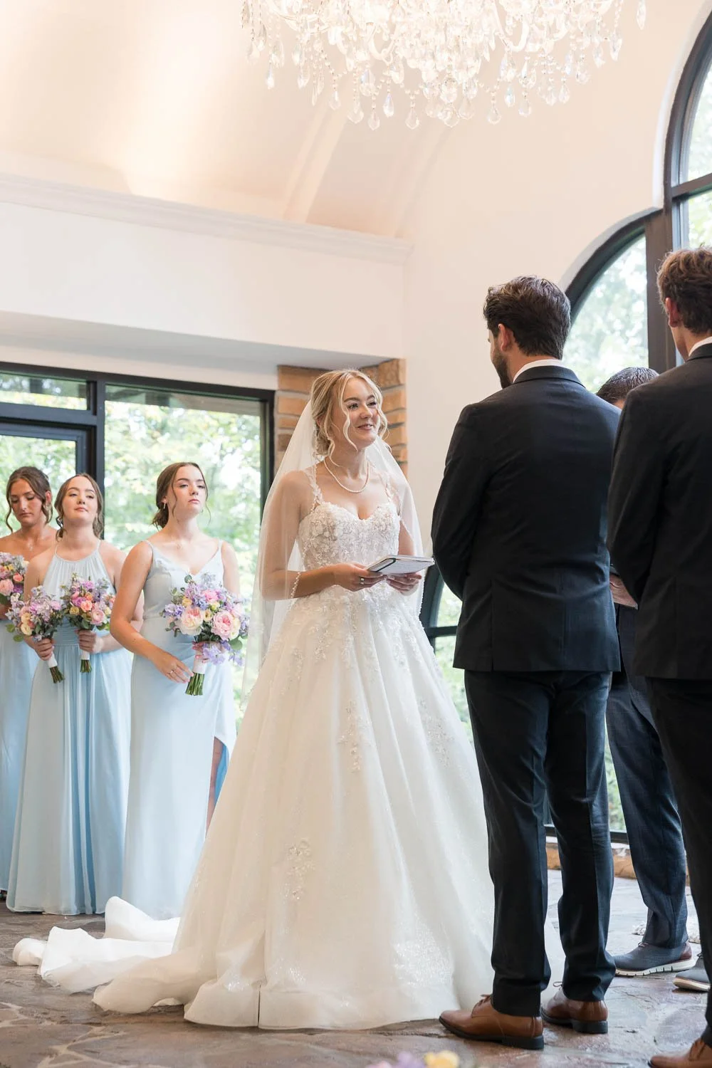 The day featured a soft dusty blue color palette paired with wildflowers, creating a calm, timeless look that felt grounding despite the extreme summer temperatures. Even in challenging conditions, the focus never wavered — the heart of the day carried everything else.